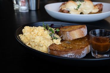 Served on buttered ciabatta toast, egg poached, fried, or scrambled.